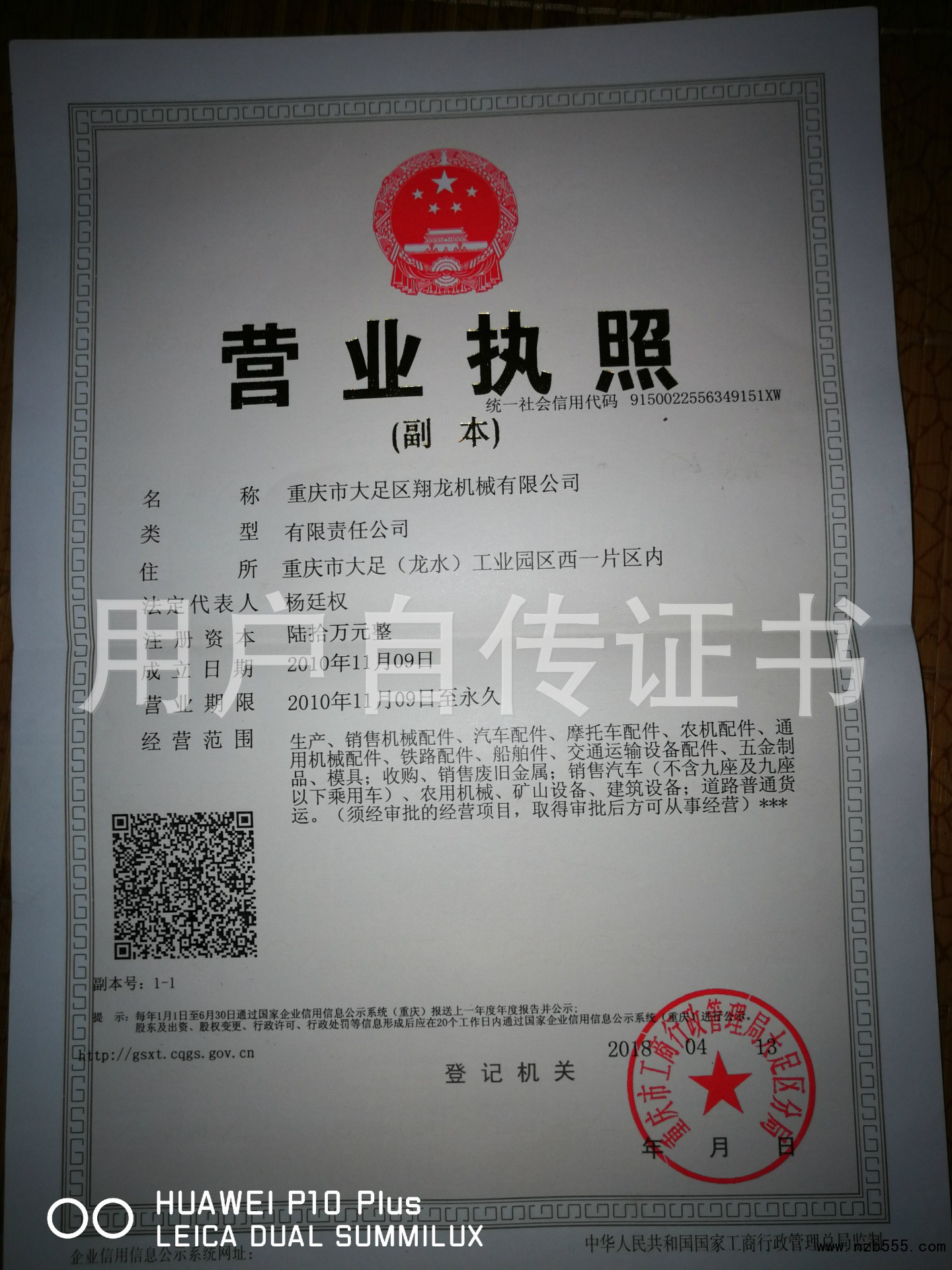 | 發(fā)證機(jī)構(gòu): | 重慶市工商行政管理局大足區(qū)分局 | 發(fā)證時(shí)間 : | 2018-04-13 |