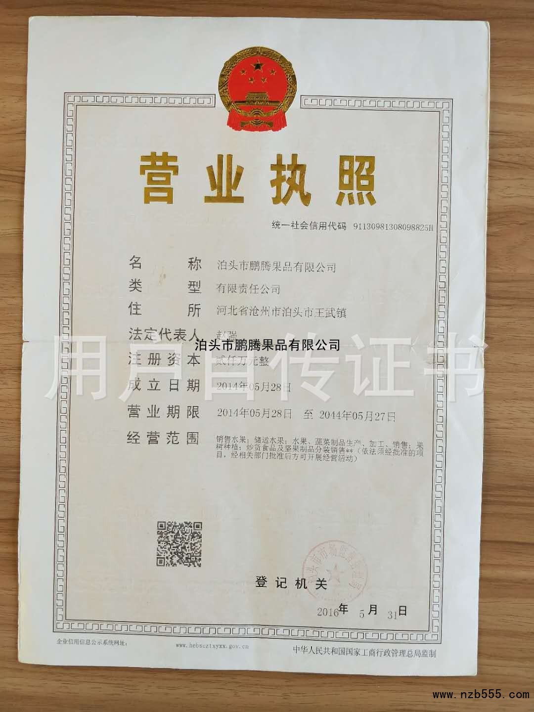 | 發(fā)證機(jī)構(gòu): | 泊頭市市場監(jiān)督管理局 | 發(fā)證時間 : | 2016-05-31 |