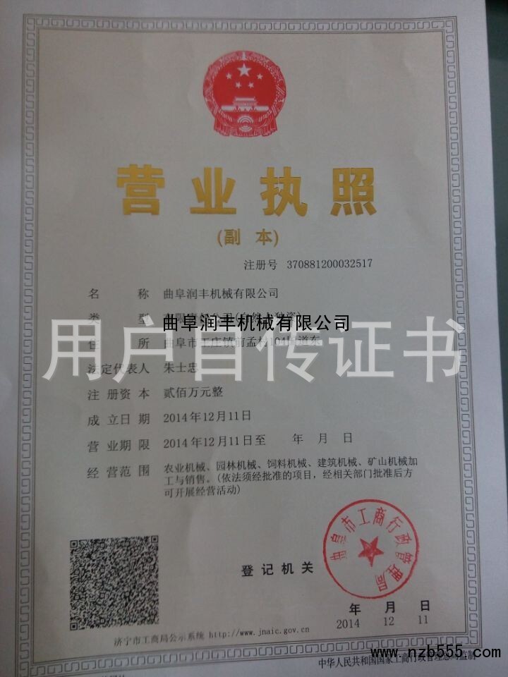 | 發(fā)證機(jī)構(gòu): | 曲阜市工商行政管理局 | 發(fā)證時(shí)間 : | 2014-12-11 |