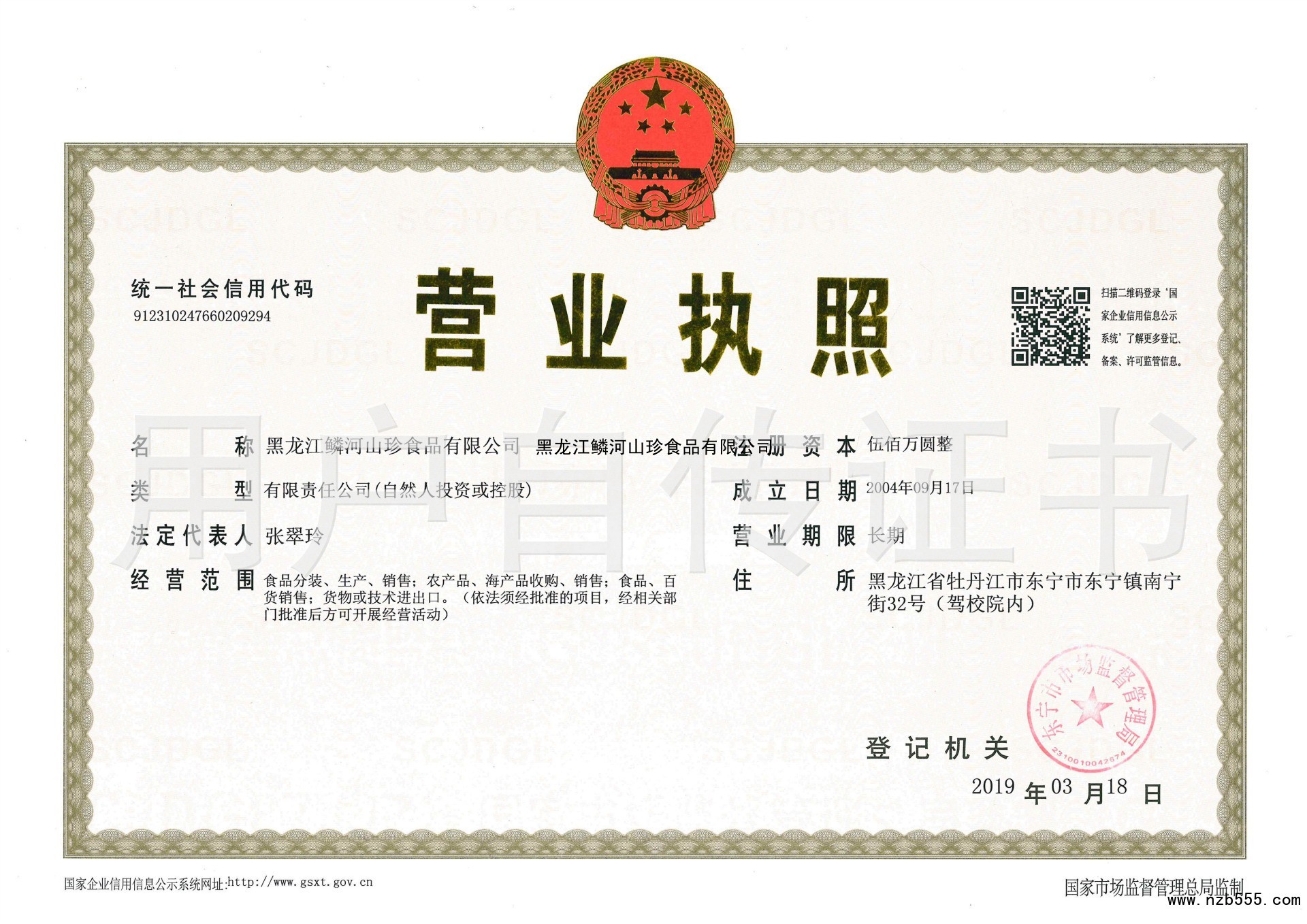 首頁 > 榮譽(yù)資質(zhì) > 黑龍江鱗河山珍食品有限公司