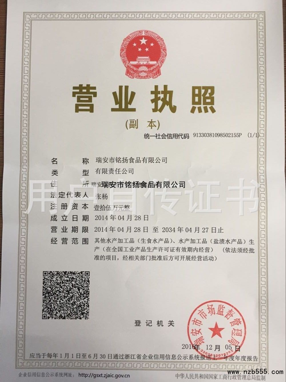 瑞安市銘揚食品有限公司