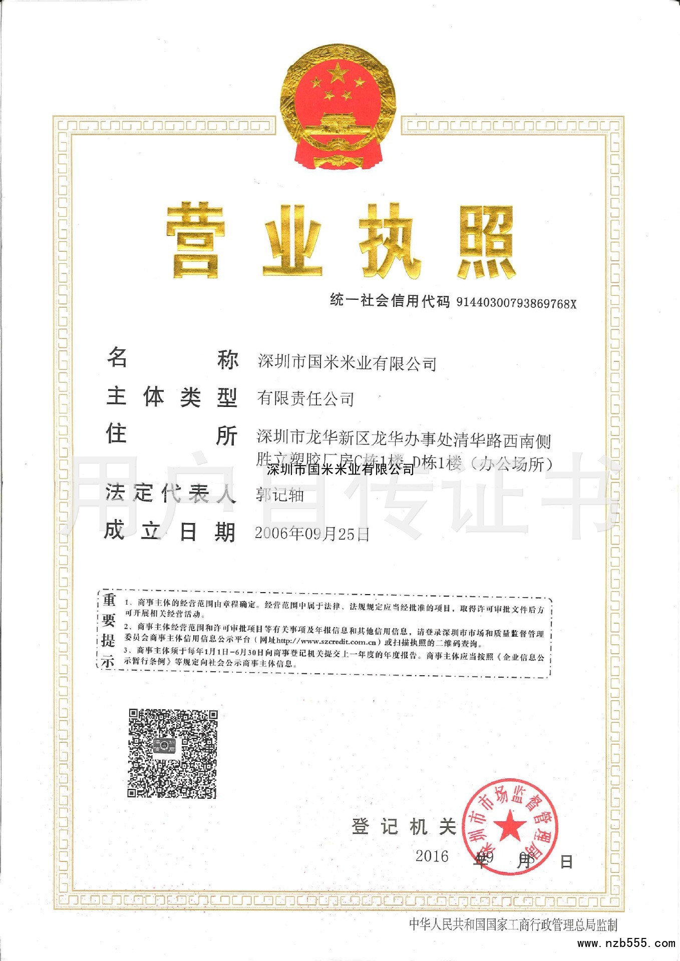 | 發(fā)證機(jī)構(gòu): | 深圳市市場(chǎng)監(jiān)督管理局 | 發(fā)證時(shí)間 : | 2016-09-08 |