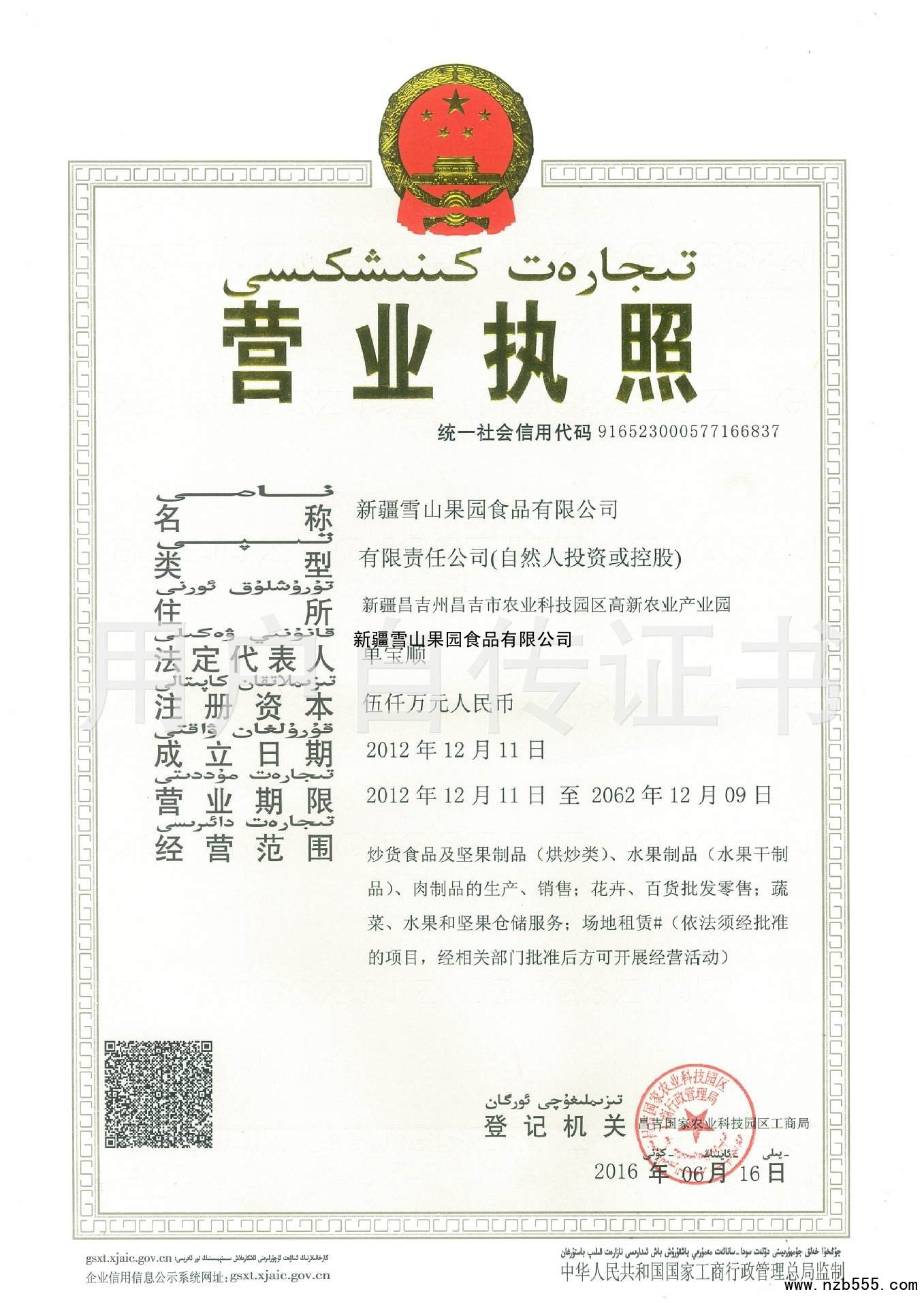 | 發(fā)證機(jī)構(gòu): | 昌吉國(guó)家農(nóng)業(yè)科技園區(qū)工商局 | 發(fā)證時(shí)間 : | 2012-12-11 |