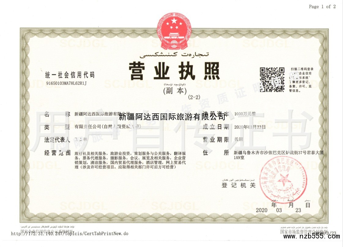 | 發(fā)證機(jī)構(gòu): | 沙依巴克區(qū)市場(chǎng)監(jiān)督管理局 | 發(fā)證時(shí)間 : | 2020-03-23 |