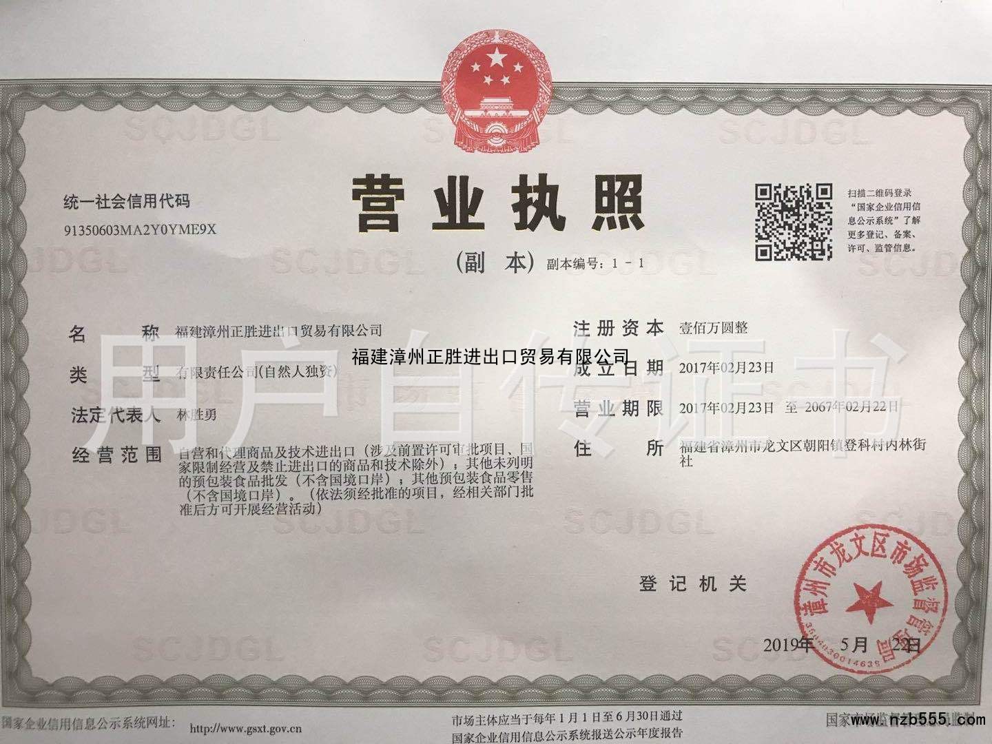 榮譽(yù)資質(zhì) 福建漳州正勝進(jìn)出口貿(mào)易有限公司