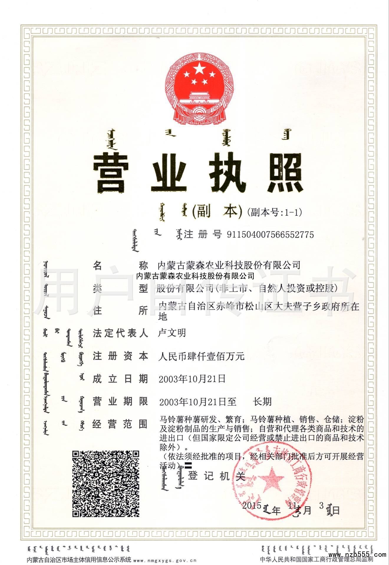 內蒙古蒙森農業科技股份有限公司