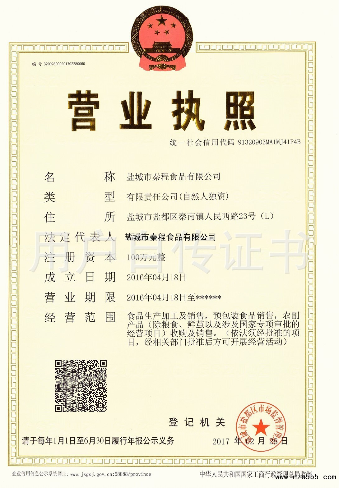 鹽城市秦程食品有限公司