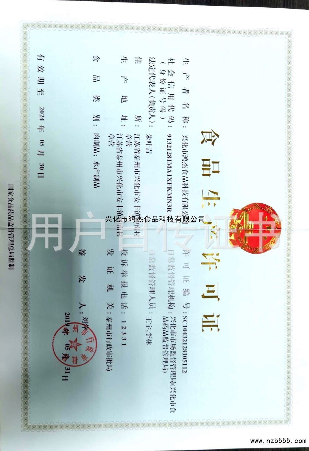 | 發(fā)證機(jī)構(gòu): | 泰州市行政審批局 | 發(fā)證時(shí)間 : | 2019-05-31 |