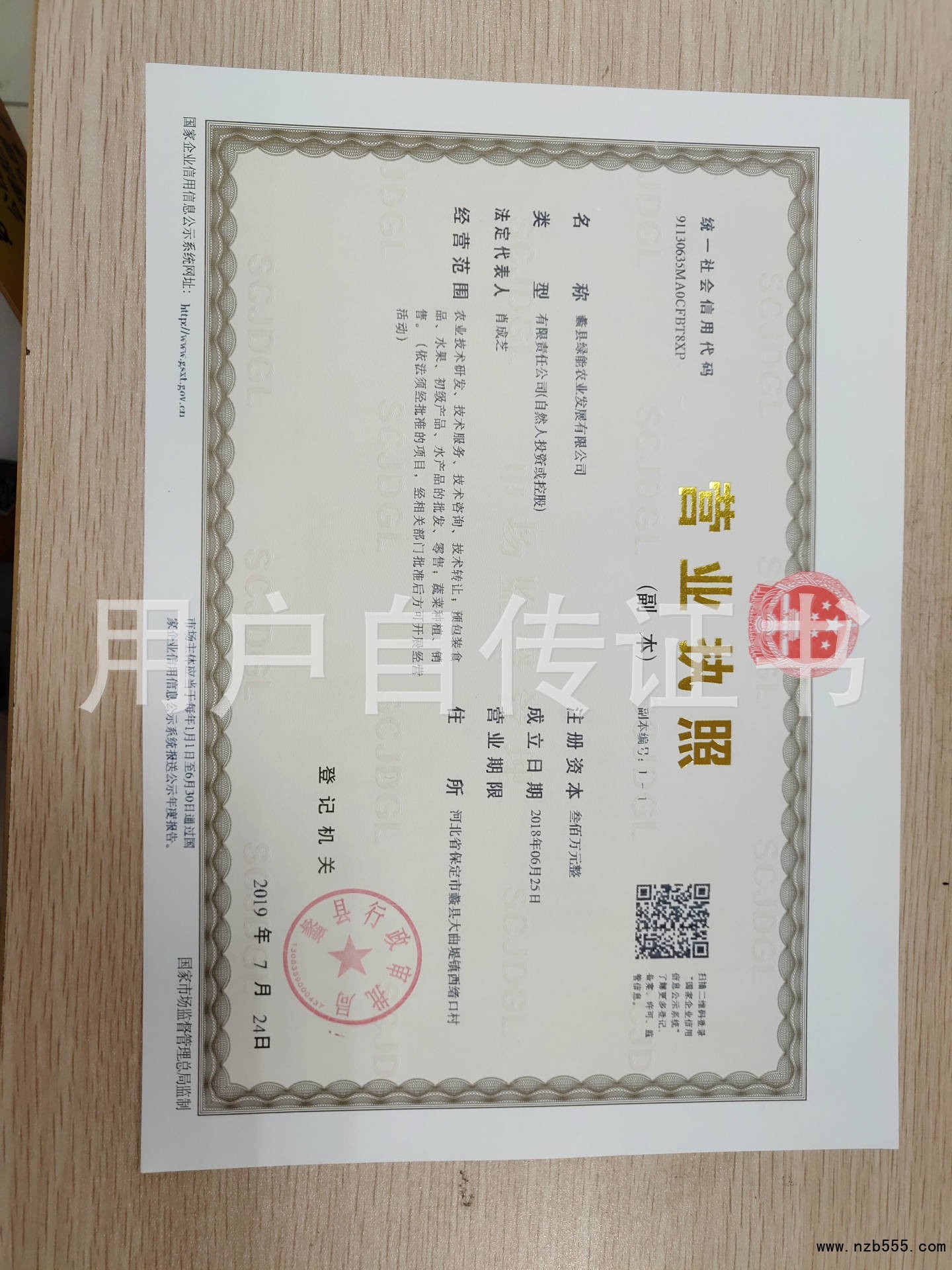 | 發(fā)證機(jī)構(gòu): | 蠡縣行政審批局 | 發(fā)證時(shí)間 : | 2019-07-24 |