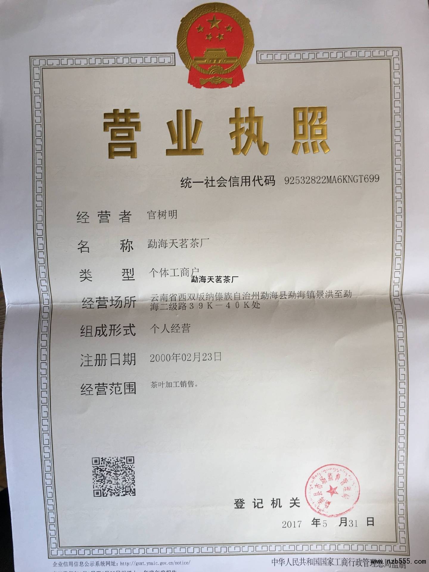 | 發(fā)證機(jī)構(gòu): | 勐海縣市場監(jiān)督管理局 | 發(fā)證時(shí)間 : | 2017-05-31 |