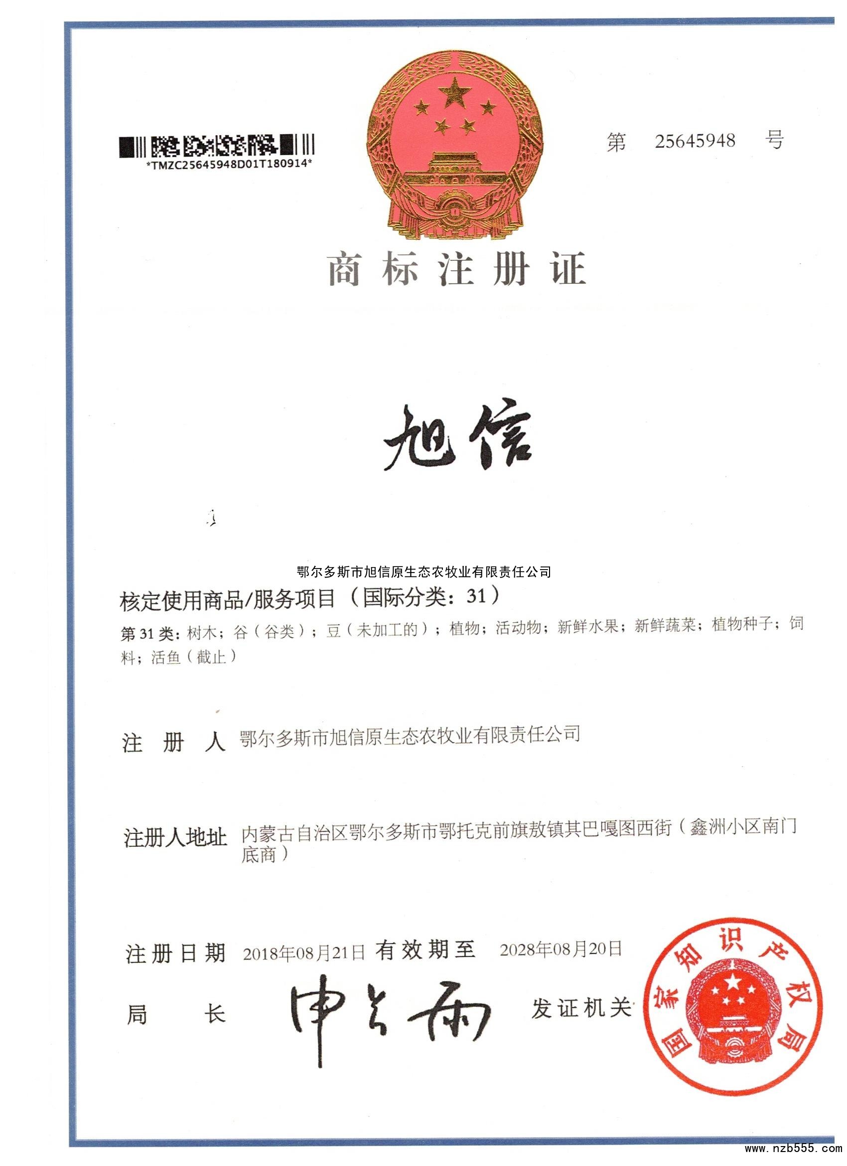 榮譽(yù)資質(zhì) 商標(biāo)注冊(cè)證 旭信 第31類(lèi)