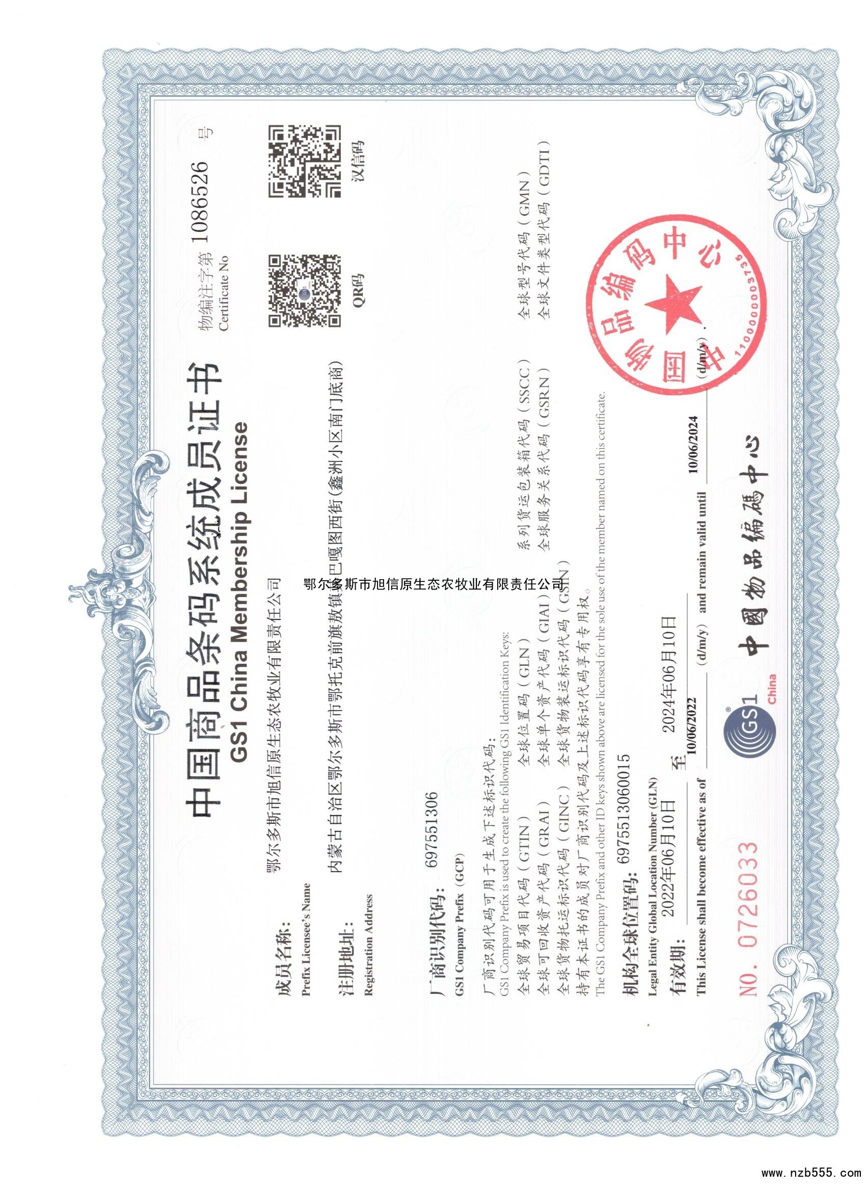 榮譽(yù)資質(zhì) 中國(guó)商品條碼系統(tǒng)成員證書(shū)