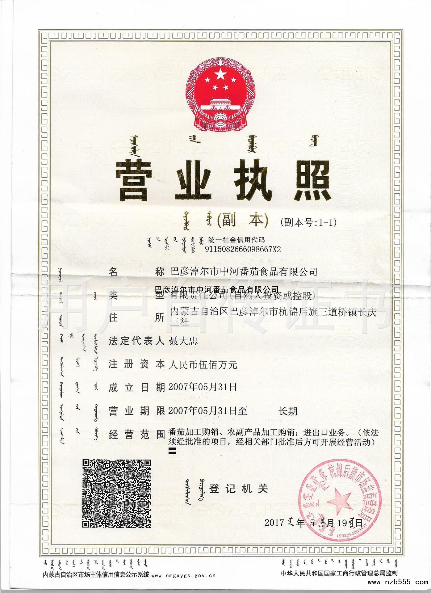 巴彥淖爾市中河番茄食品有限公司