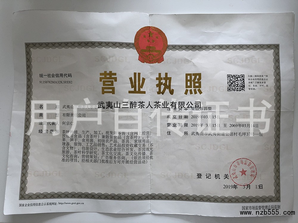 | 發(fā)證機(jī)構(gòu): | 武夷山市市場(chǎng)監(jiān)督管理局 | 發(fā)證時(shí)間 : | 2019-03-15 |
