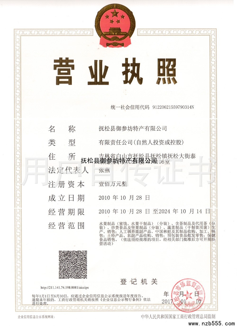 榮譽(yù)資質(zhì) 撫松縣御參坊特產(chǎn)有限公司