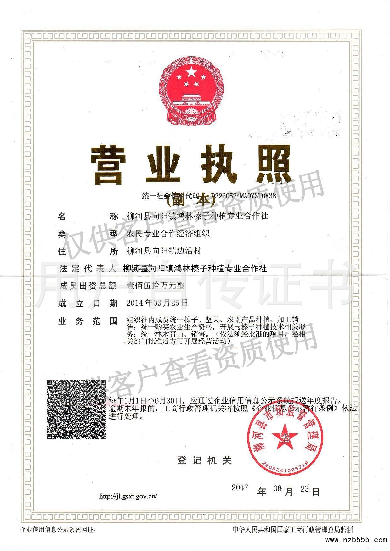 榮譽(yù)資質(zhì) 柳河縣向陽鎮(zhèn)鴻林榛子種植專業(yè)合作社