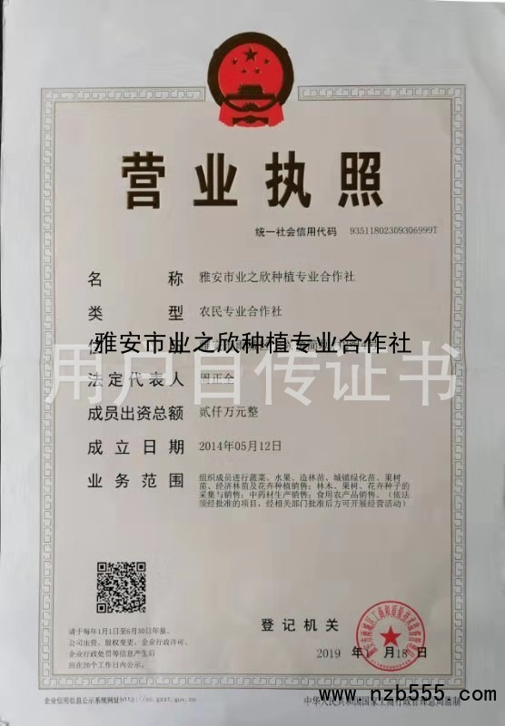榮譽(yù)資質(zhì) 雅安市業(yè)之欣種植專業(yè)合作社