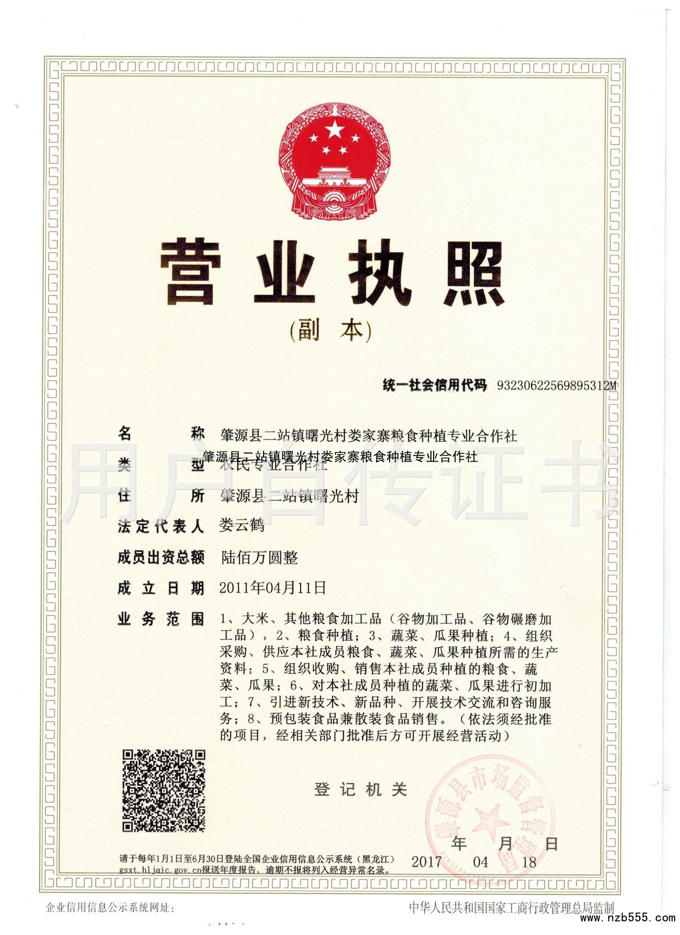 | 發(fā)證機(jī)構(gòu): | 肇源縣市場(chǎng)監(jiān)督管理局 | 發(fā)證時(shí)間 : | 2017-04-18 |