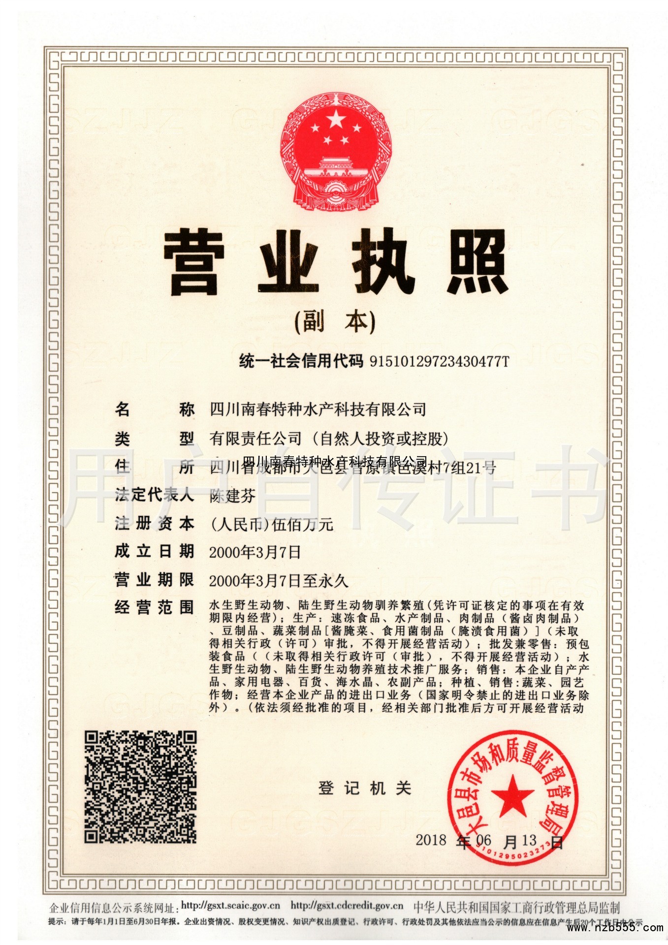 榮譽(yù)資質(zhì) 四川南春特種水產(chǎn)科技有限公司