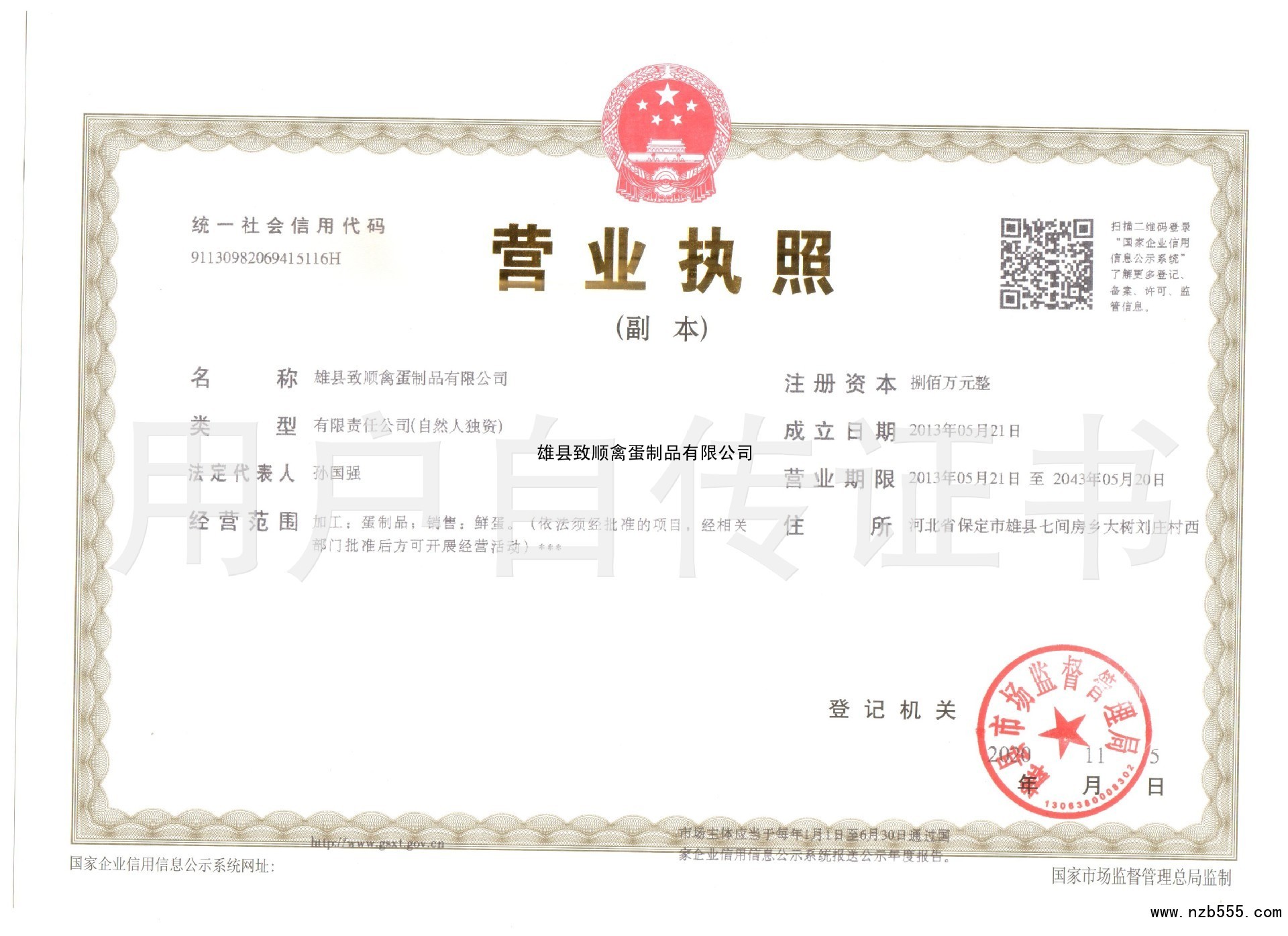 榮譽(yù)資質(zhì) 雄縣致順禽蛋制品有限公司