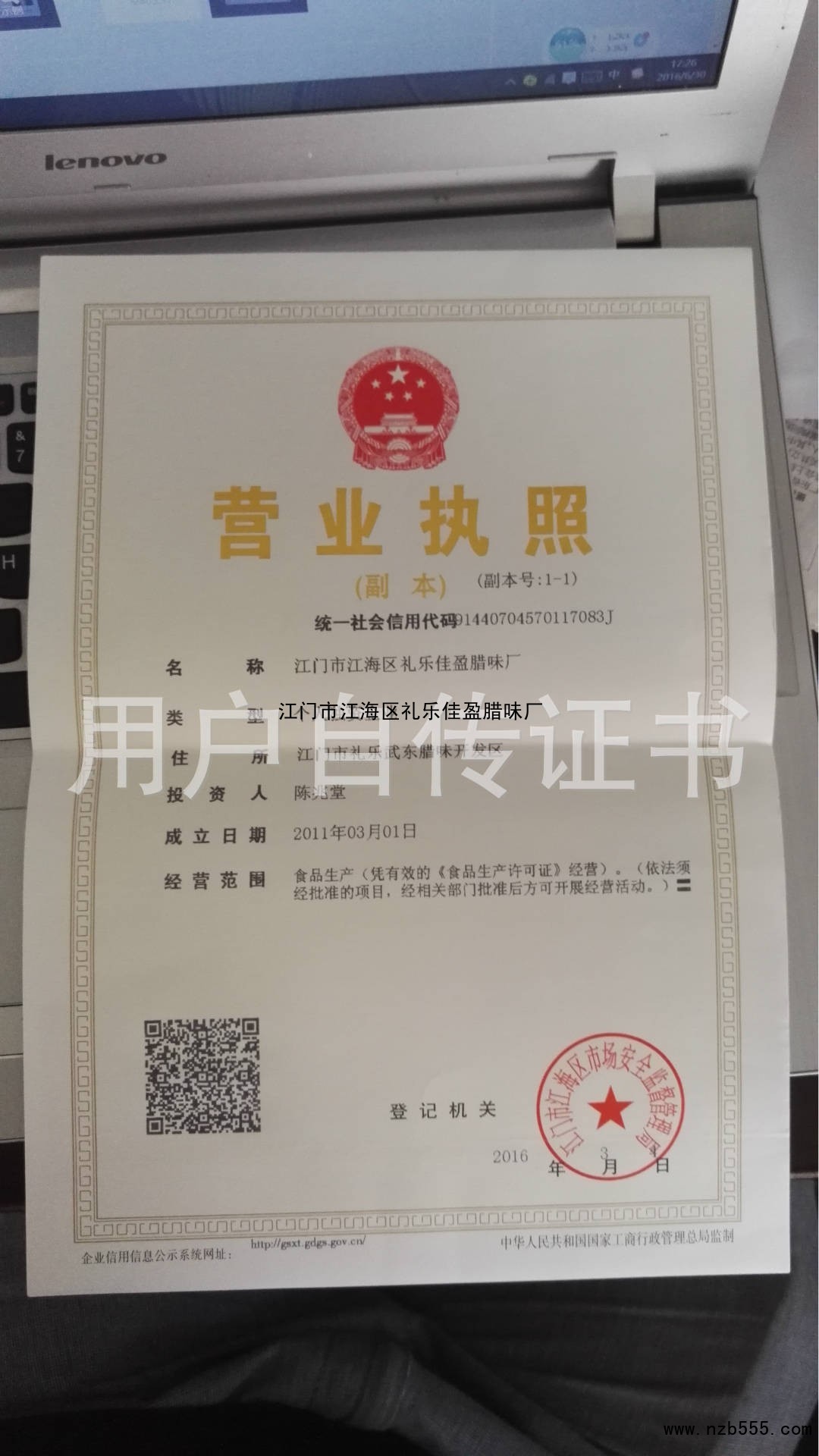 | 發(fā)證機(jī)構(gòu): | 江門市江海區(qū)市場安全監(jiān)督管理局 | 發(fā)證時(shí)間 : | 2016-03-04 |