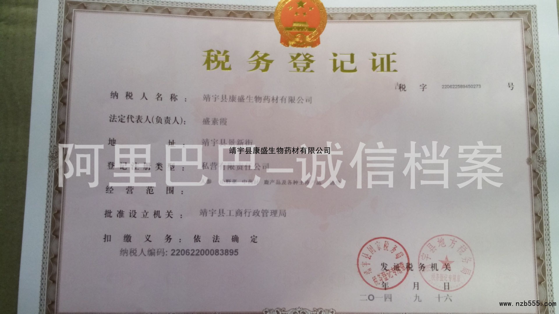 榮譽(yù)資質(zhì) 靖宇縣康盛生物藥材有限公司