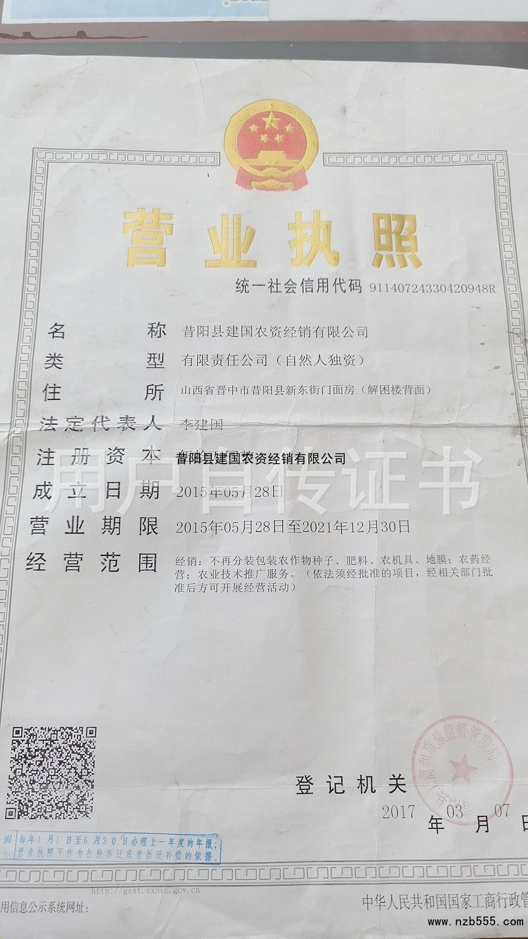 榮譽(yù)資質(zhì) 昔陽(yáng)縣建國(guó)農(nóng)資經(jīng)銷(xiāo)有限公司