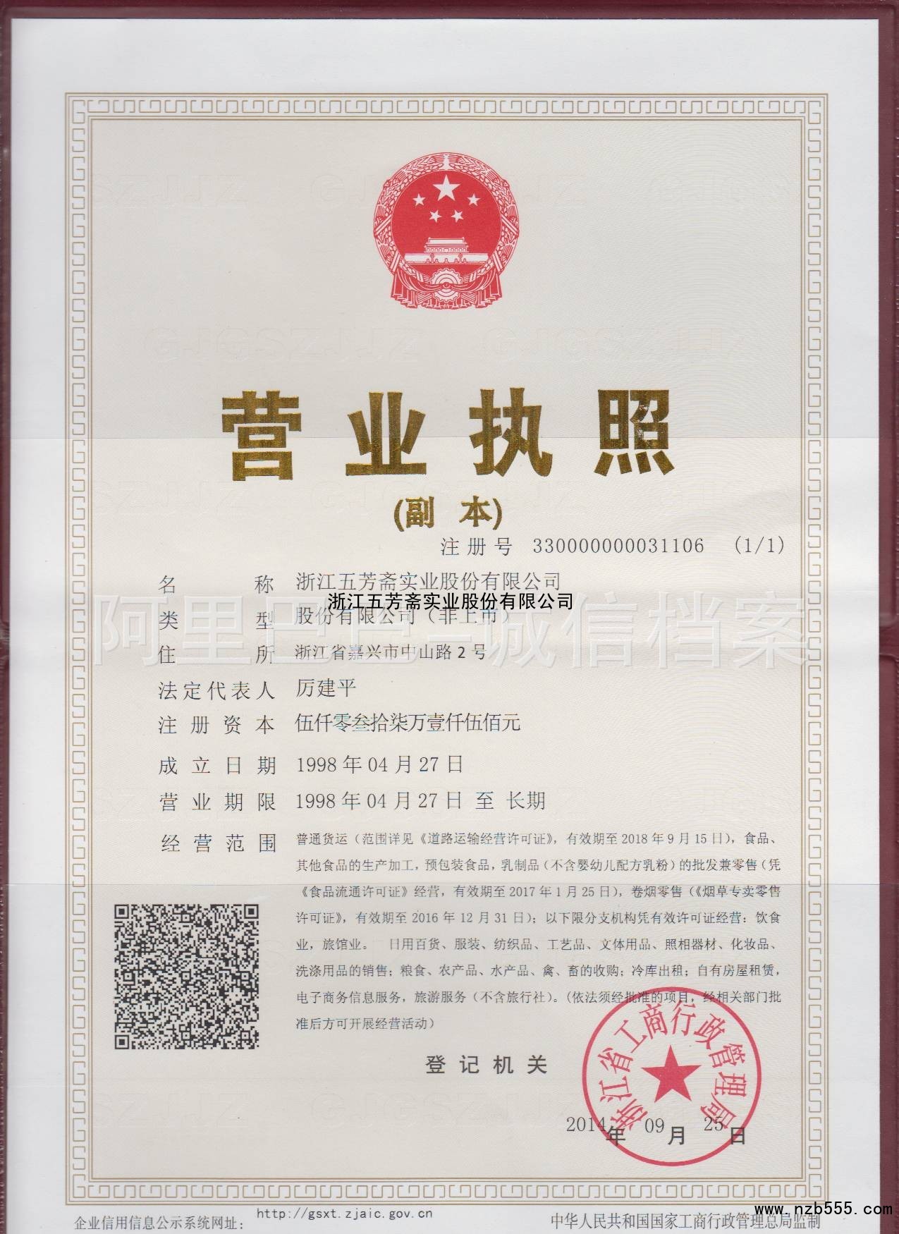 浙江五芳齋實業股份有限公司