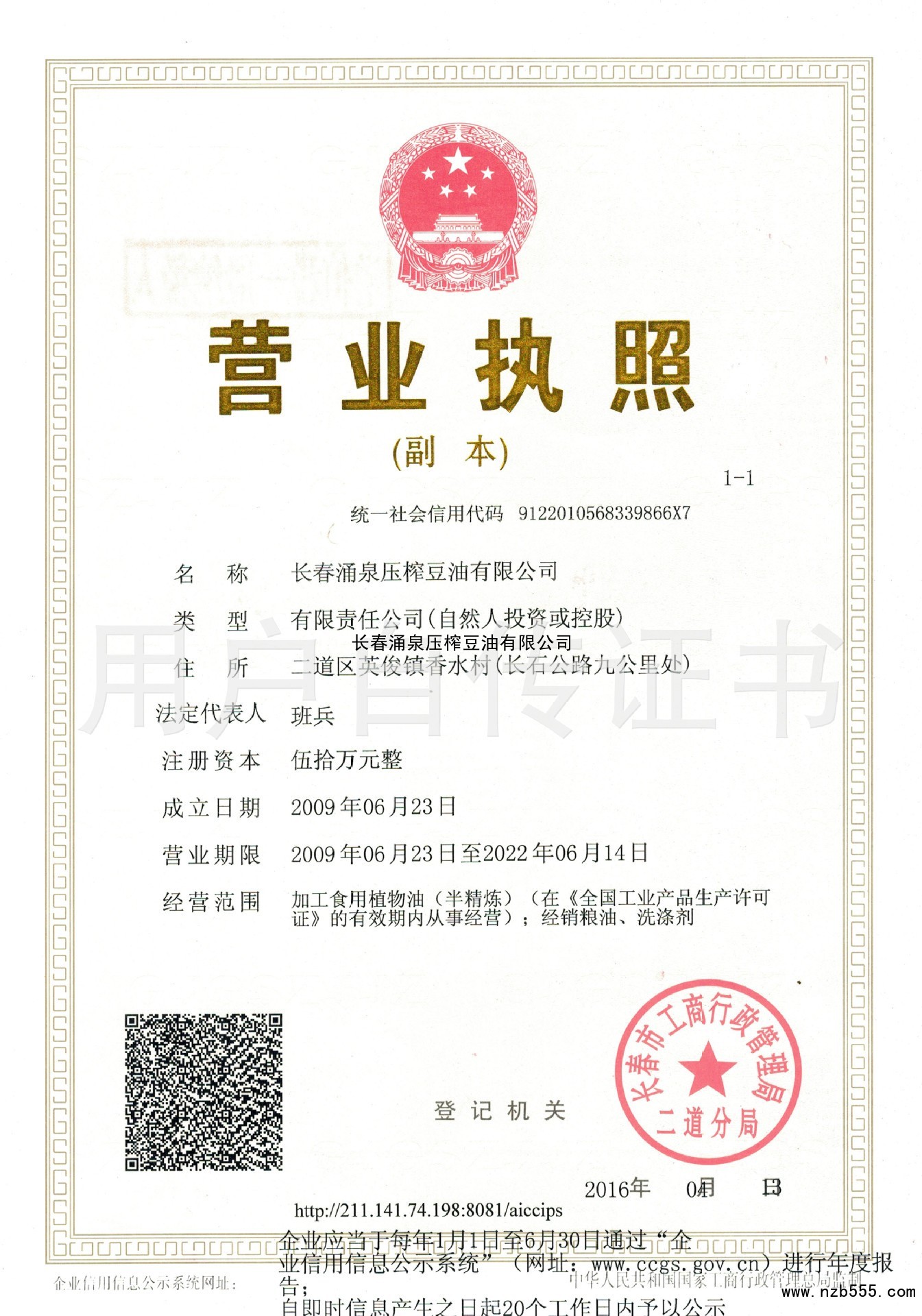 長春涌泉壓榨豆油有限公司