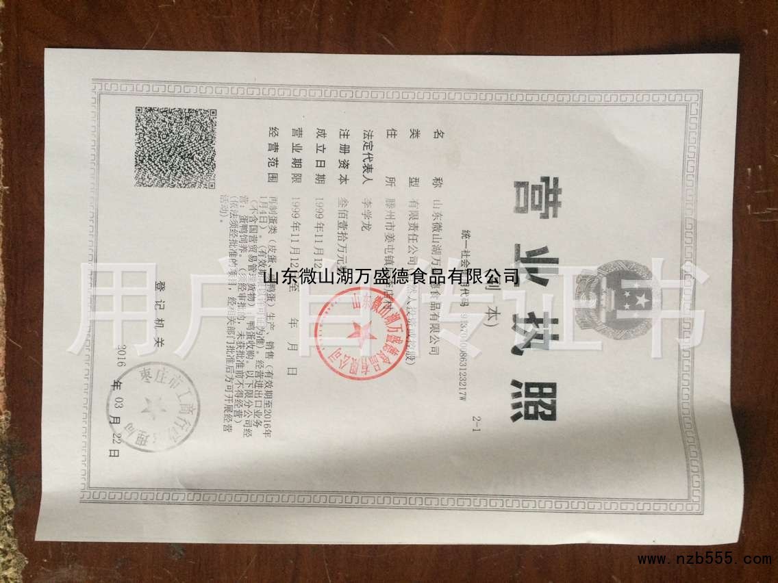 榮譽(yù)資質(zhì) 山東微山湖萬(wàn)盛德食品有限公司