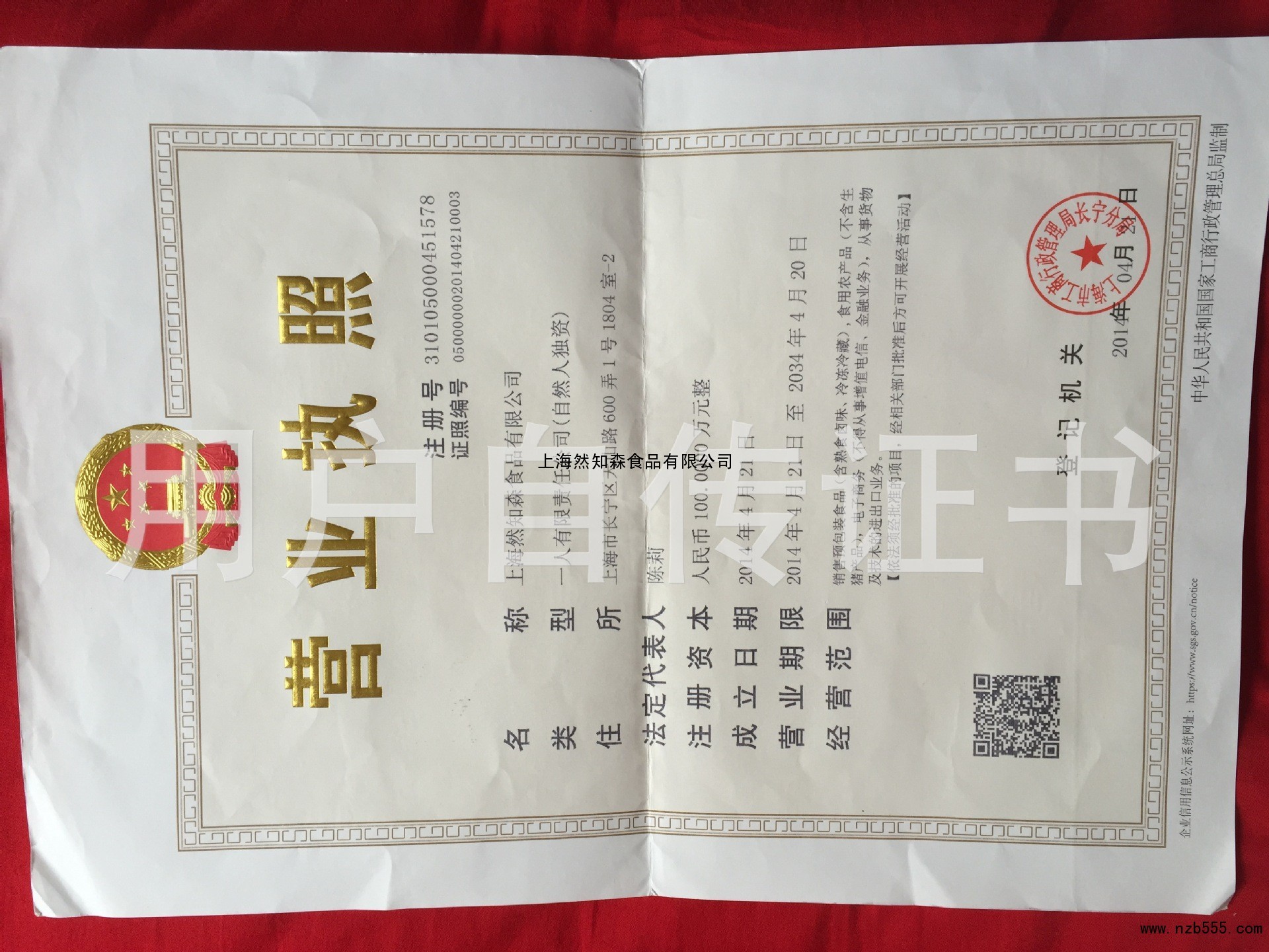 發證機構:   上海市工商行政管理居長寧分局 發證時間 :   2014-04-21