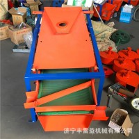 該精選篩為二層篩網,先經過進料口處風機抽風,直接抽走重量輕的雜葉或麥秸稈,上層篩的初次篩分再把大雜清理過,好的糧食(種子)直接落到下層篩網上,下層篩網會把糧食(種子)中的小雜.小石子.有缺陷的糧食(種子)直接漏掉,完好的糧食(種子)會從出料口篩分出來。該小型清糧機解決了揚場機的功能單一,不能有效去除石子.土塊的缺陷,更能為清理.凈選糧食(種子)帶來滿意的效果。該機有占地小,移動方便,便以維修,除塵除雜效率明顯,能耗低,使用簡便等優點。