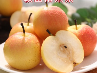 2.南果梨有后熟期,果子都是新鮮采摘的頭茬果,果肉偏硬,經(jīng)過一周左右的催熟后,果皮呈亮黃色,可以在表面按出淺淺的按印,并能聞到淡淡的酒香。