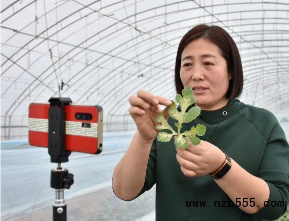 中新網(wǎng)保定3月24日電 (呂子豪 馮杰)“這片瓜葉發(fā)黃,不是感染了病害,是因?yàn)樘鞖馔蝗环徘绾螅笈锿L(fēng)不及時(shí),導(dǎo)致葉片水分養(yǎng)分喪失。”23日,在河北省保定市清苑區(qū)南王莊村的一處西瓜大棚里,“李素環(huán)直播課堂”又開講了。