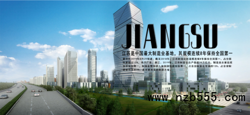 新華社2019年8月29報道:截至2018年,江蘇制造業的規模連續8年保持全國第一,占全國比重超過13%,高于廣東、浙江。2019年,江蘇制造業總產值超20萬億元,制造業總量連續多年全國第一,制造業整體收入和利潤位居全國第一,占全國制造業市場的15%、占全球制造業市場的4%,是名副其實的制造大省。