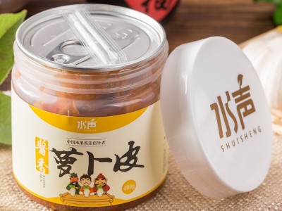 水聲蘿卜皮微商榨菜咸菜辣白菜泡椒橄欖菜5瓶起批400克每瓶 水聲牌爽口蘿卜皮 開口爽泡菜醬菜東北酸菜酸豆角300克3袋起批 水聲牌蘿卜皮 1斤蘿卜條才剝2兩 300克每袋源頭廠家直供下飯菜