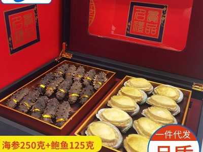 大容量大連干海參鮑魚組合375克 大連干海參鮑魚禮盒干貨批發