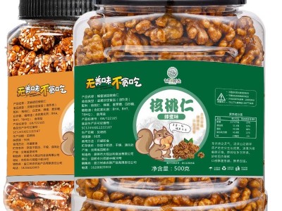 七采樹森云南特產500g芝麻蜂蜜琥珀紙皮核桃仁罐裝堅果炒貨零食
