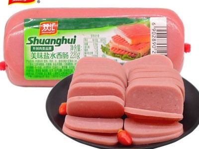 雙匯美味鹽水香腸220g支火腿腸三明治午餐肉切片方腿腸火腿批發