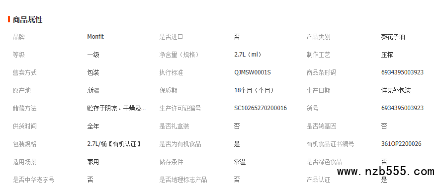MONFIT 有機(jī)葵花籽油5斤一級壓榨 富含維生素E食用油家用 量大優(yōu)惠