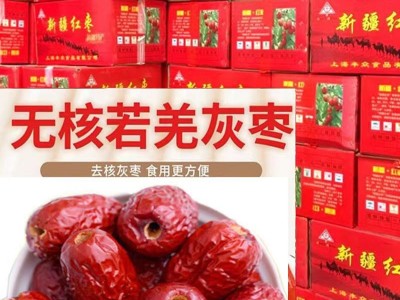 新疆去核紅棗灰棗若羌棗小中大個無核棗軟空心棗奶棗原料20斤整箱